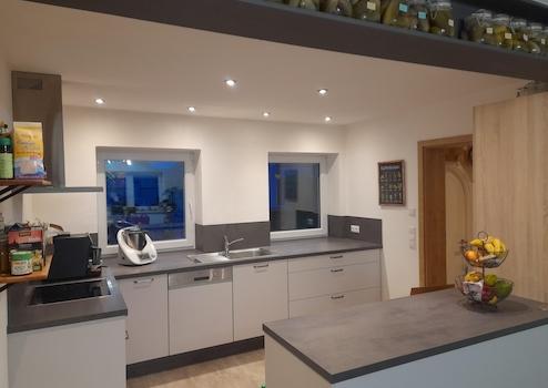 Bei der Kernsanierung (Wohneinheit 1) wurden sämtliche Leitungen (Elektro, Wasser, Abwasser, etc.) erneuert. Der komplette Fußbodenaufbau wurde neu gemacht (Fußbodenheizung, Zementestrich, etc.). Alle Fenster und Türen wurden neu gemacht (3-fach Verglasung). Die Fassade wurde mit einem ökologischen Vollwärmeschutz zusätzlich gedämmt (Holz Aufständerung mit Holzfaser isoliert und Holzfaser Putzträgerplatte) .Der Dachaufbau und Dacheindeckung wurde neu gemacht. Der Keller wurde umlaufend freigelegt, abgedichtet und isoliert. Die komplette Haustechnik wurde erneuert (Grundwasser-Wärmepumpe, Pufferspeicher, etc. ). Die Wände, innen wie außen wurden neu verputz und gestrichen. Also im Prinzip einmal alles neu :)