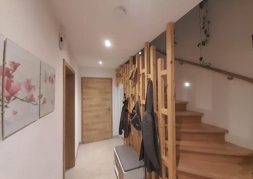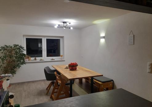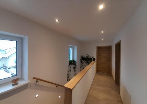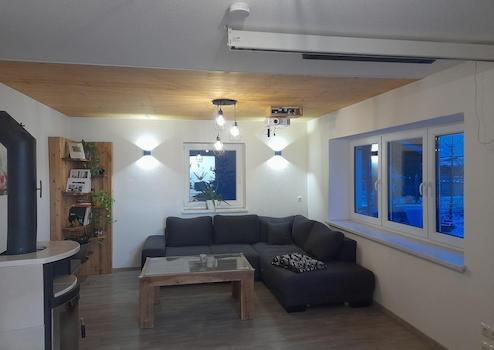 Die hellen, lichtdurchflutenden Räume mit modernen Fußböden und Zimmertüren sind allesamt mit einer Fußbodenheizung (Wärmepumpe) ausgestattet. Alle Zimmer können über elektrische Jalousien verdunkelt werden. In beiden Gebäudeteilen sind bereits Küchen verbaut. Im Wohnzimmer ist ein Schwedenofen verbaut welcher im Handumdrehen eine gemütliche Atmosphäre in Ihr neues Zuhause bringt.