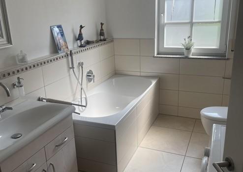 In der Wohnung selbst sind insbesondere sie abgehängten Decken mit integrierter Beleuchtung in allen Räumen sowie das luxuriöse Bad mit Wanne und bodenebener Regendusche hervorzuheben. Weitere Highlights sie der zentral gelegene große und formschöne helle Kachelofen sowie die hochwertige Küche mit Holz-Arbeitsplatte und Marken-Elektrogeräten.