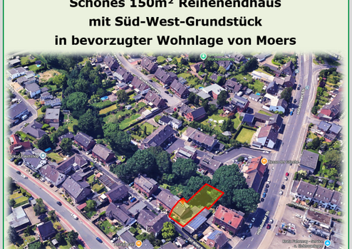Verschaffen Sie sich mit dem angehängten Exposé (pdf-Format) einen ersten Eindruck über unser "Schönes 150m² Reihenendhaus mit Süd-West-Grundstück in bevorzugter Wohnlage von Moers". Sie finden dort u.a. Pläne und 3D-Darstellungen des Hauses mit der heutigen Raumaufteilung.