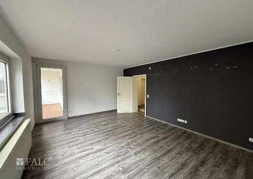 Das geräumige Wohnzimmer ist der perfekte Ort für gemütliche Abende und führt direkt auf den Balkon, der zum Entspannen im Freien einlädt. Die großen Fenster sorgen für viel Tageslicht und schaffen eine einladende Atmosphäre.
