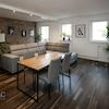 Hier stehen jetzt also ein Schlafzimmer und ein geräumiges Wohn- Esszimmer zur Verfügung. Eine offene, voll eingerichtete Küche ist an den Essbereich angegliedert. Das moderne Bad ist mit Waschtisch, Dusche, Badewanne, WC und Waschmaschinenanschluss gut und modern ausgestattet. Hier ist auch die Gas-Etagenheizung untergebracht.