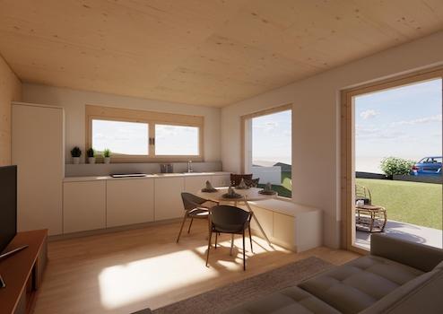 Diese charmante 2-Zimmer-Wohnung im Untergeschoss bietet modernen Wohnkomfort in nachhaltiger Holzbauweise und den idealen Rückzugsort für Paare oder Singles. Der offene Wohnbereich mit direktem Zugang zur Terrasse schafft ein helles Ambiente. Ein separates Schlafzimmer sowie ein modernes Tageslichtbad ergänzen das Raumangebot optimal.