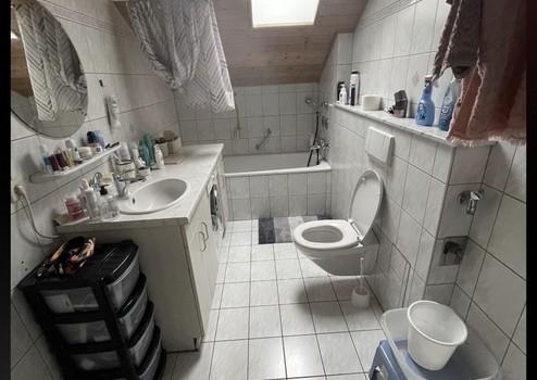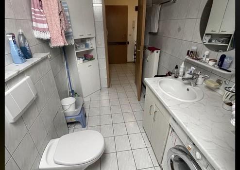 Bad mit Badewanne, Schränkchen unter dem Waschbecken, Waschmaschne.