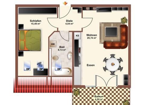 Wohnfläche 58 m²