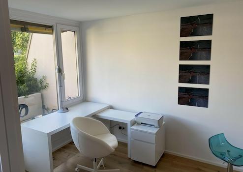 - eingerichteter Arbeitsplatz mit Möglichkeit zu super schnellen Internet (Glasfaseranschluss, LAN, WLAN, Steckdosen)