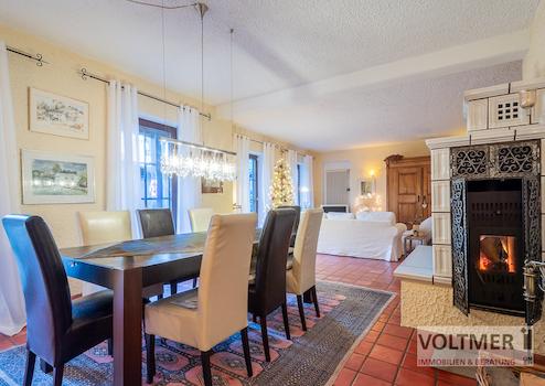 - offener Wohn- Essbereich mit Kachelofen und Zugang zur teilüberdachten Terrasse