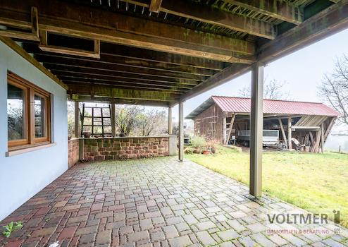- großer Holzunterstand im Garten