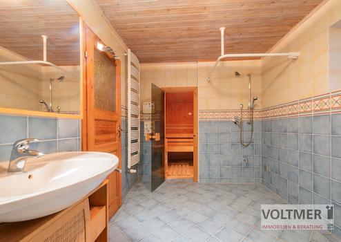 - Tageslichtbad mit bodenebener Dusche, Eckbadewanne & Sauna
