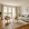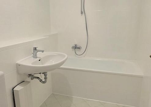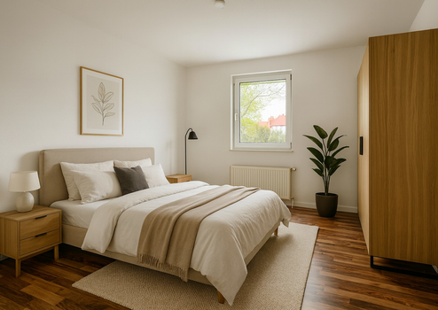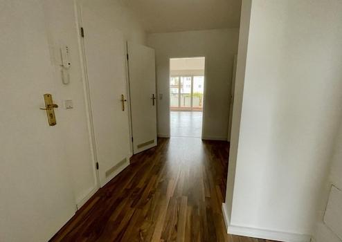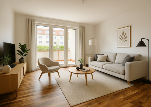 Die Wohnung überzeugt durch einen einheitlichen, modernen Bodenbelag in dunkler Holzoptik, frisch gestrichene weiße Wände sowie eine durchdachte Raumaufteilung. Neben dem großzügigen Wohnzimmer stehen zwei weitere helle Zimmer zur Verfügung.