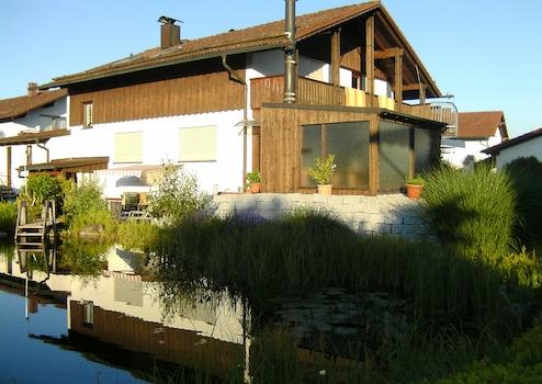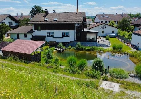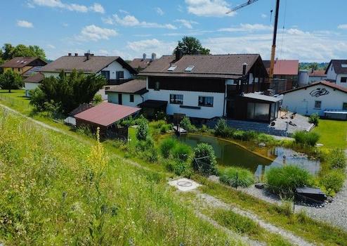 Stellen Sie sich vor, Sie wachen auf, hören das zwitschern der Vögel, gehen ein paar Schritte durch den liebevoll angelegten Garten und tauchen direkt in Ihren eigenen ca. 150 qm großen Schwimmteich -- ein Ort der Ruhe, der Freude und des puren Wohlgefühls. Diese Haus ist nicht einfach nur ein Gebäude -- es ist ein Ort an dem Erinnerungen entstehen, Kinder spielen, Freunde zusammenkommen und das Leben gefeiert wird.