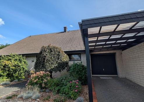 Das Grundstück umfasst 804 m² und bietet einen sonnigen, vielseitig nutzbaren Garten. Hier finden Kinder Platz zum Spielen, während Erwachsene die Terrasse genießen. Neben einer Garage und einem Carport steht zudem ein Schuppen zur Verfügung, der sich beispielsweise für die Unterbringung eines Wohnwagens und als Werkstatt eignet.