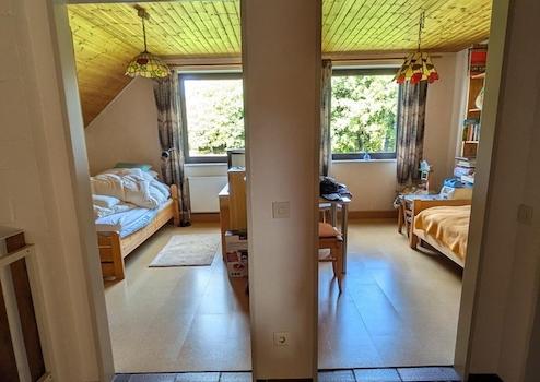 Die Hauptwohnung umfasst ca. 187 m² und bietet ein offenes Wohnkonzept mit Wohn- und Essbereich. Bodentiefe Fenster zur Südseite öffnen den Blick in den Garten und sorgen für viel Licht. Ergänzt wird sie durch mehrere Schlaf- und Kinderzimmer sowie ein Arbeitszimmer, das sich ideal für Homeoffice eignet. Die ca. 70 m² große Einliegerwohnung mit separatem Zugang ist derzeit vermietet und eröffnet vielseitige Nutzungsmöglichkeiten - als Kapitalanlage, für Angehörige oder zur Eigennutzung. Beide Bereiche lassen sich bei Bedarf auch wieder unkompliziert miteinander verbinden. Das Haus ist voll unterkellert, zusätzlich stehen ca. 100 m² Nutzfläche zur Verfügung.