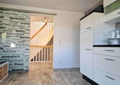 Eine tolle Küche, ein geräumiges Wohnzimmer und ein Gäste-WC finden Sie hier vor.