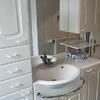 Ober- und Unterschrank inklusive Spiegel sowie WC ausgestattet.