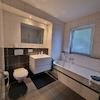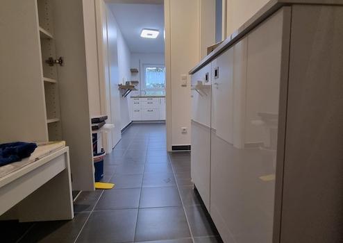Hochwertige Ausstattung: Einbauküche, Einbauschrank im Flur, Fußbodenheizung, Eichenparkett, Bad und Terrassentür elektrische Rollläden, Rest manuell, Lüftungsanlage, Bad mit begehbarer Dusche, Badewanne und Fenster, zusätzlicher Zugang vom Schlafzimmer in den Garten und Gartenhaus.