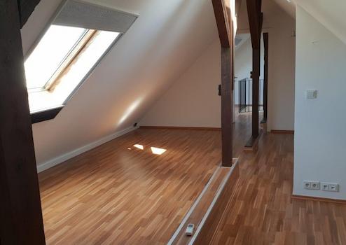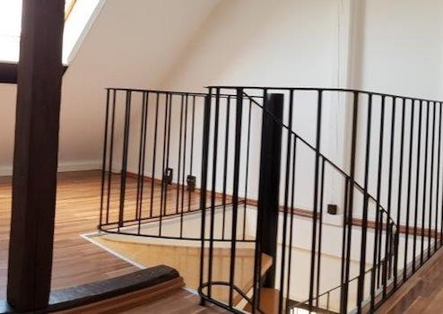 Vom Flur aus erreicht man das große Dachgeschosszimmer (27m² "Wohnfläche", aber insgesamt 80m² "Grundfläche") über eine Wendeltreppe. Ideal als Büro-/Hobby- oder Fernsehzimmer nutzbar. Vor dem Dachgeschosszimmer befindet sich ein schöner, heller Vorraum, der weitere Nutzflächen bietet. Im Dachgeschosszimmer steht zudem eine kleine Abstellkammer zur Verfügung.