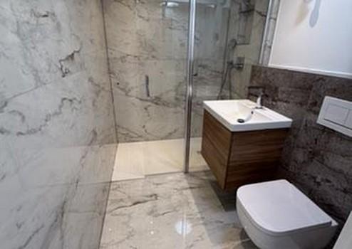 Obergeschoss: Im Obergeschoss befinden sich zwei Schlafzimmer und ein Bad. Das große Schlafzimmer (19 m²) ist mit Flügelfenstern ausgestattet und hat eine maximale Höhe im Giebelbereich von 3,75 m. Das kleinere Schlafzimmer (11 m²) umfasst einen zusätzlichen kleinen Giebelbereich, der über eine Leiter/Raumspartreppe zugänglich ist und mit elektrischem Panorama-Dachflächenfenster inklusive elektrischer Jalousie ausgestattet ist. Das moderne Duschbad im edlen Marmor-Design bietet eine hochwertige Badausstattung und einen Tageslichtspot.