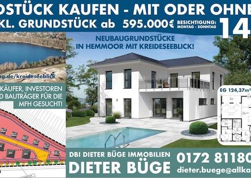 1a-Grundstück, Seeblick, LK Cuxhaven, 21745 Hemmoor! Mit Haus inkl. Grund: ab 395.000! 01728118000