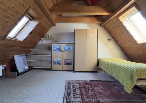 Decken: Beton, Holzbalken zum Dachboden