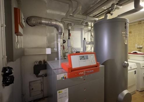 Heizung-Warmwasserbereitung: Gasbetriebener Niedertemperaturkessel (Einbau 2003) mit Solarthermie-Unterstützung