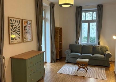 Wunderschöne komplett neu möblierte 2-Raum Wohnung mit großer Küche und Flur im sanierten Gründerzeitalbau in Dresden-Striesen.