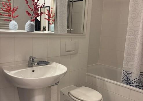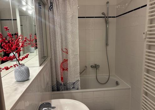 The apartment has been freshly renovated and equipped with new appliances and furniture.