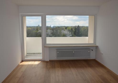 Diese helle 3-Zimmer-Wohnung mit ca. 66,5 m² Wohnfläche befindet sich im 7. Obergeschoss eines gepflegten Mehrfamilienhauses in München-Moosach. Die Wohnung verfügt über einen Süd - Balkon und ein Kellerabteil, das zusätzlichen Stauraum bietet. Ein moderner Aufzug erleichtert den Zugang zu allen Etagen. Die Wohnung ist ab dem 1.4.2026 verfügbar und wurde 2017 komplett saniert. Alle Böden in den Zimmern wurden mit Holzparket und in Küche, Bad und Flur wurden die Böden mit hochwertigen italienischen Marmorfliesen erneuert. Das Bad wurde komplett saniert: Rohre, Abflüsse, Heizkörper, sowie hochwertige Fliesen an den Wänden ausgestattet. Im Jahr 2025 wurde das gesamte Gebäude einer energetischen Sanierung unterzogen, es wurde eine Außendämmung mit einer neuer Fassade angebracht. Deshalb konnten die Heizkosten für die Wohnung gemindert werden.