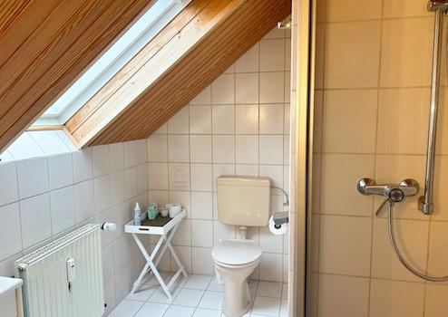 Das ausgebaute Dachgeschoss ist über eine fest eingebaute Treppe erreichbar und verfügt über einen Flur, ein Schlafzimmer, ein Wohnzimmer sowie ein Badezimmer. Diese Ebene bietet zusätzlichen Wohn- oder Rückzugsraum und erweitert die Nutzungsmöglichkeiten der Immobilie.