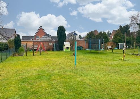 Ein besonderes Highlight ist der große, vollständig eingezäunte Garten, der ideale Voraussetzungen für Familien mit Kindern oder für Haustierhaltung bietet. Vom Obergeschoss aus besteht über eine Außentreppe ein direkter Zugang zum Garten, was die Nutzung besonders komfortabel macht.