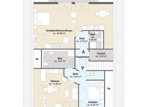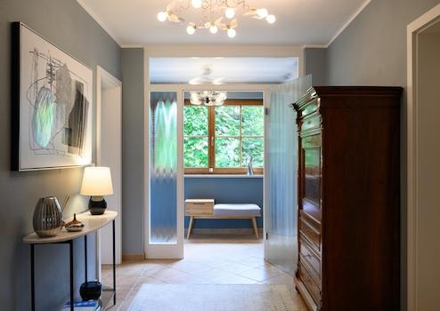 Die vier voll ausgestatteten (Ferien)Wohnungen des Hauses, erreichen Sie über einen hochwertig gestalten und überdachten Außenaufgang mit separater Haustüre und einem hellen Treppenhaus.