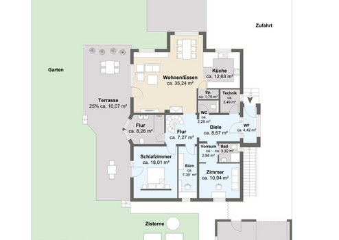 Großzügige Wohnung im EG - eigener Eingang über kleine Außentreppe: