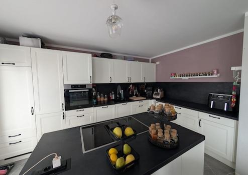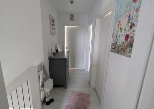 Das Haus verfügt über drei gut geschnittene Schlafzimmer, ein Gästezimmer bzw. Büro, zwei Badezimmer, einen Hauswirtschaftsraum sowie eine praktische Speisekammer. Die neue, moderne offene Einbauküche im Landhausstil ist ein besonderes Highlight und lässt keine Wünsche offen.