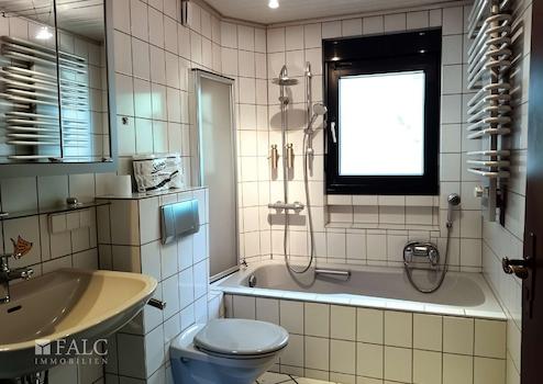 Ein Badezimmer im Erdgeschoss mit Badewanne sorgt für Komfort und Bequemlichkeit. Im Dachgeschoss findet sich noch ein Duschbad.