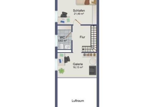 Schränke: In der Galerieebene steht ein großzügiger Einbauschrank im Schlafzimmer zur Verfügung.