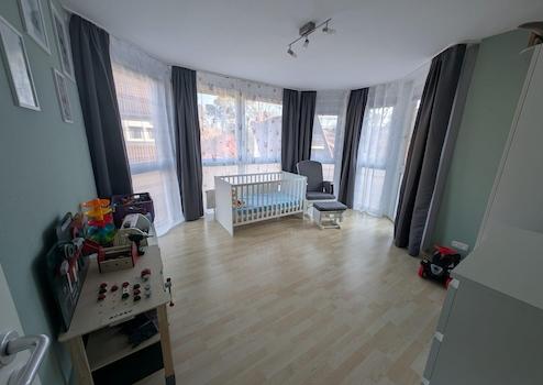 Das Kinderzimmer mit bodentiefen Glas-Erkerfenster und das Büro mit perfektem Tageslicht durch bodentiefe Fenster bieten besonderen Flair und Funktionalität.