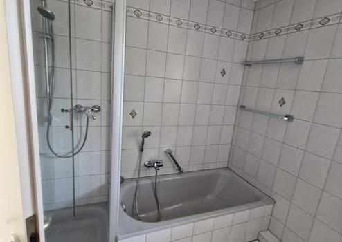 Das große Tageslichtbad mit Dusche und Badewanne ist gefliest, während Sie sich dank des Waschkellers im Kellerbereich den Platz für eine Waschmaschine im Bad sparen.