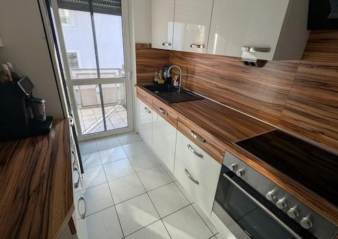 Der Balkon ist bequem von der Küche (Einbauküche ohne Kühlschrank inkludiert) aus erreichbar.