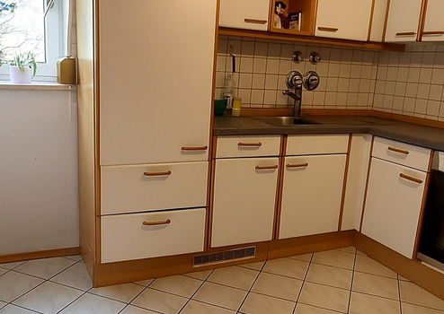 Balkon, Keller, Duschbad, Einbauküche, Laminat, Fliesen