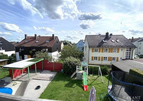 Blick vom Balkon in den Garten