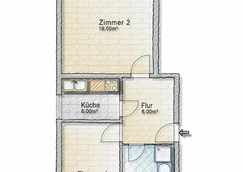 2 Zimmer, Küche, Bad, Flur,