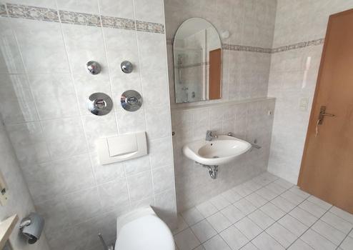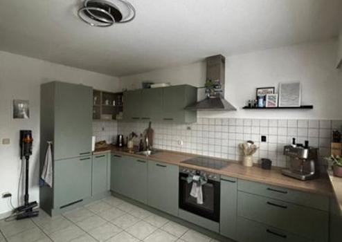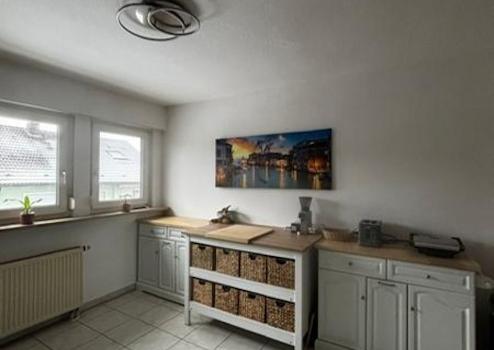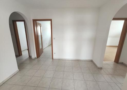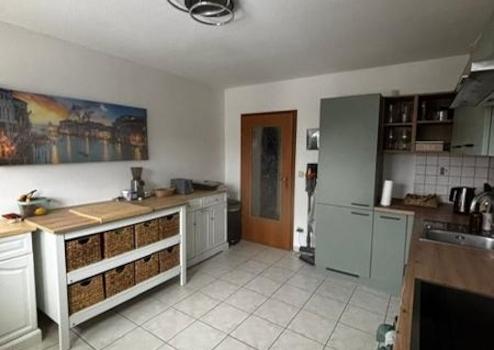 Die gepflegte Wohnung liegt im Dachgeschoss (2. Obergeschoss) eines Mehrparteienhauses. Die Wohnung verfügt über einen Windfang im Eingangsbereich, eine großzügige Diele, einen Abstellraum, eine Küche mit ausreichend Platz für einen Esstisch, ein Bad (mit Badewanne, Fenster und Dusche), ein Wohnzimmer, ein Elternschlafzimmer und ein Kinder- oder Arbeitszimmer. Vom Elternschlafzimmer, sowie dem Kinder- /Arbeitszimmer aus ist ein Balkon zu erreichen. Eine auf den Bildern zu sehende Einbauküche ist im Objekt vorhanden und kann vom Vormieter abgelöst werden. Zur Wohnung gehören ein Kellerraum und eine Garage. Die Waschmaschine und der Trockner können in einer Waschküche mit Trockenraum untergebracht werden.