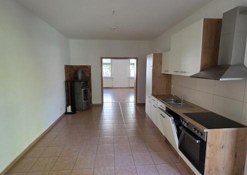 Eine geräumige Wohnküche mit separater Kammer, Einbauküche und Kamin