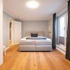 - Edler Eichenparkettboden, Feinsteinzeug in Bädern und Fluren