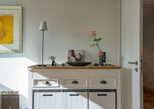 Das Herzstück im Erdgeschoss: ein großzügiger Wohn- und Essbereich mit offener Küche, direktem Zugang zu zwei geschützten Sonnenterrassen und dem pflegeleichten Garten. Dazugehörend im Souterrain zwei Tages-belichtete Räume, ein hochwertiges Bad mit Wanne und Dusche sowie ein separater Hauswirtschaftsraum – ideal als private Rückzugsebene.