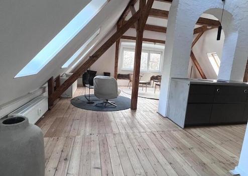 - Loftartige Atmosphäre mit Sichtbalken, Dachschrägen und viel Tageslicht