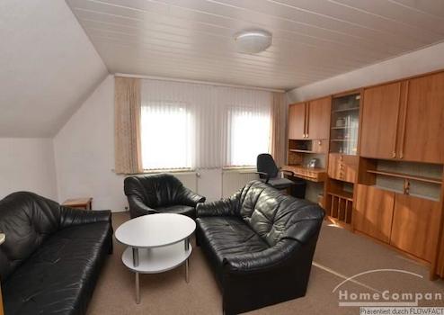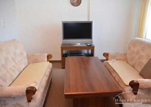 Diese Wohnung befindet sich im Dachgeschoß eines Einfamilienhauses und verfügt über einen separaten Zugang. Der zentrale Raum ist die vollausgestatte Wohnküche. Das große Wohnzimmer ist mit einer Couchgarnitur und einem Fernseher ausgestattet. Ein zweites Wohnzimmer kann als Arbeitszimmer genutzt werden. Im Schlafzimmer befindet sich ein großes Doppelbett und ein Kleiderschrank. Das Badezimmer verfügt über eine Badewanne. Die Wohnung ist ideal für ein Paar.