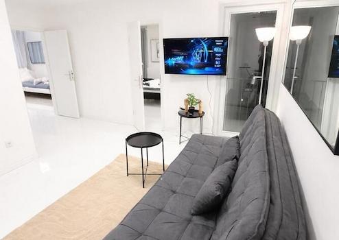 Voll möblierte, großzügig geschnittene Wohnung mit 4 Schlafzimmern, separater Küche, Badezimmer mit WC und Badewanne, Gäste-WC und Wohnzimmer.
