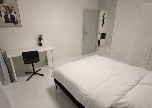 Modern möbliertes 1-Zimmer-Apartment mit Terrasse in Schwabing. EG. Der ansprechend und stilvoll möblierte Wohn-/Schlafbereich verfügt über eine Schlafcouch, Esstisch für bis zu 3 Personen und einen Kleiderschrank. Von ...