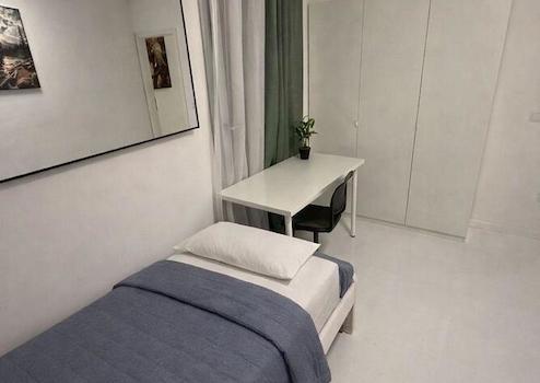 Hübsches möbliertes 1-Zimmer-Apartment mit 30 m² Dachterrasse in Milbertshofen. 3. Etage ohne Lift, Wohn-/ Schlafraum mit komfortablem Stapelbett, das bei Bedarf als Doppelbett genutzt werden kann. Kleine separate ...